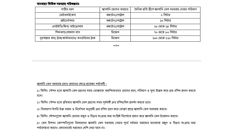 2. প্রতিবার জ্বালানি তেল নেওয়ার সময় পূর্ববর্তী ক্রয় রশিদ বা বিল প্রদর্শন করতে হবে