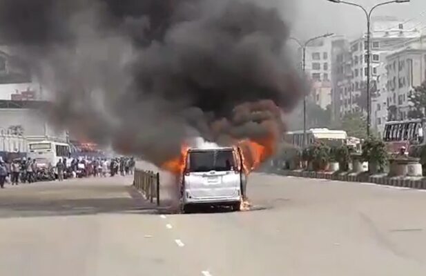 বনানীতে চলন্ত মাইক্রোবাসে হঠাৎ আগুন
