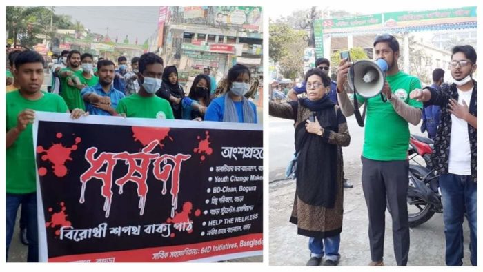 বগুড়ায় 64D initiatives এর সহযোগিতায় ধর্ষণ বিরোধী শপথ বাক্য পাঠ