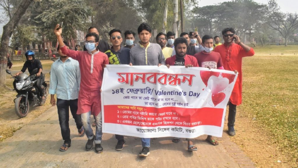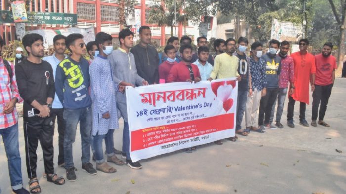 বিশ্ব ভালােবাসা দিবসে বগুড়ায় সিঙ্গেলরা প্রেমবিরােধী মিছিল মানববন্ধন ও সমাবেশ করেছে বগুড়া সিঙ্গেল কমিটি।