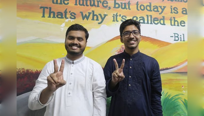 চাকসুতে বিজয়ী ছাত্রশিবির সমর্থিত সম্প্রীতির শিক্ষার্থী জোট প্যানেলের ভিপি প্রার্থী মো. ইব্রাহিম হোসেন (বাঁয়ে) ও জিএস সাঈদ বিন হাবিব। ছবি:…