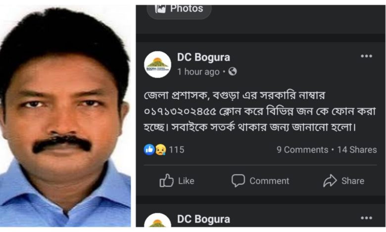 বিস্তারিত>>বগুড়া জেলা প্রশাসক মোঃ জিয়াউল হকের সরকারি মোবাইল নম্বর ক্লোন করে বিভিন্ন ব্যক্তির কাছে টাকা দাবির ঘটনা ঘটেছে।জানা যায়, গতকাল…