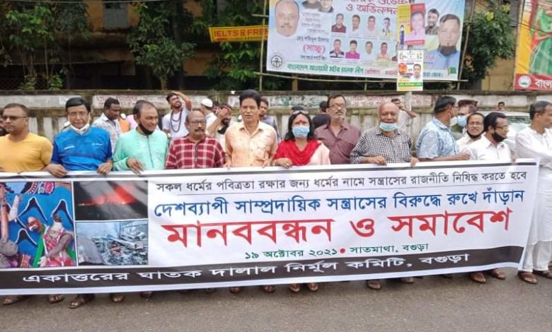 বিস্তারিত>>ষড়যন্ত্রমূলক ধর্ম অবমাননার ইস্যু সৃষ্টি করে দেশের বিভিন্ন জেলায় সাম্প্রদায়িক সন্ত্রাস সৃষ্টির প্রতিবাদ জানিয়ে মানববন্ধন কর্মসূচি ও সমাবেশ করেছে সম্মিলিত…