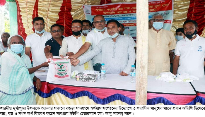 বগুড়ায় আসন্ন শারদীয় দুর্গাপূজা উপলক্ষ্যে আর্ত মানবতার সংগঠন ‘স্বর্ণগ্রাম’ এর উদ্যোগে ৩ শতাধিক মানুষের মাঝে নগদ অর্থ ও বস্ত্র বিতরণ…
