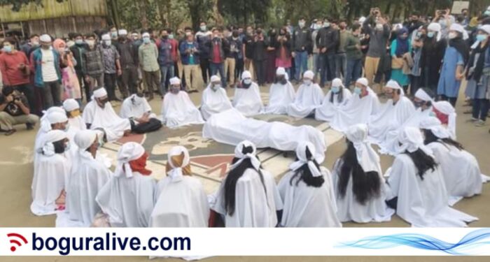 শিক্ষার্থীদের গায়ে কাফনের কাপড় আর সামনে খাটিয়া প্রতীকী মরদেহ রেখে মিছিল করছেন। মিছিলটি বিকেল ৩টার দিকে ক্যাম্পাসের গোলচত্বর থেকে শুরু হয়ে বিভিন্ন সড়ক ঘুরে পুনরায় গোলচত্বরে গিয়ে শেষ হয়।